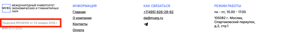 Некоторые образовательные центры добавляют лицензии сразу на главную страницу, чтобы читателю было удобнее.