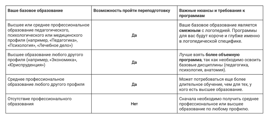 Если повышение квалификации — для тех, кто уже логопед, то переподготовка — это способ стать логопедом людям с другим образованием.